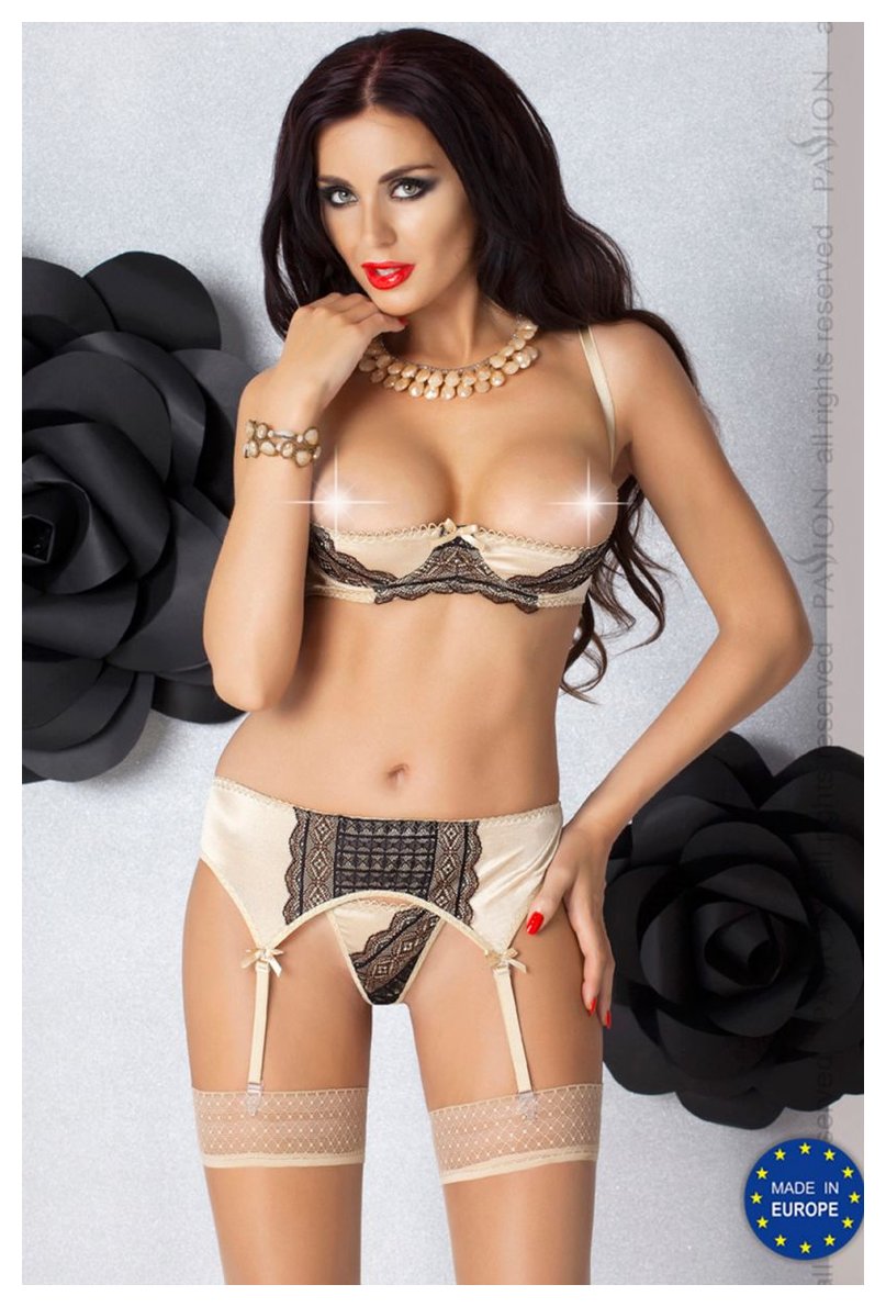 Чарующий комплект Olimpia с открытым лифом. В комплекте: бюстгальтер, трусики-стринги, пояс.