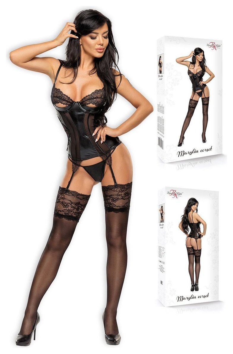 Черный корсет с кружевными вставками Marilyn, в комплект идут стринги. В комплекте: корсет, трусики-стринги.