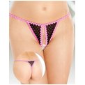 Эти трусики-стринг позволят вам убить двух зайцев сразу, а именно подтолкнуть мужчину к нежным, столь желанным для вас ласкам, а также продемонстрировать свою интимную причёску. Всё это заслуга пикантного вертикального разреза, открывающего интимный доступ к телу. Розовый горошек и отделка кружавчиками в тон придадут вашему образу особенную соблазнительность и игривость.