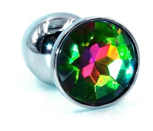 Серебристая малая анальная пробка с радужным кристаллом - 7 см
