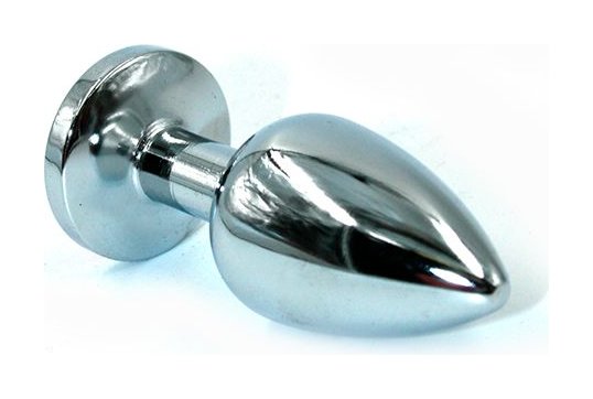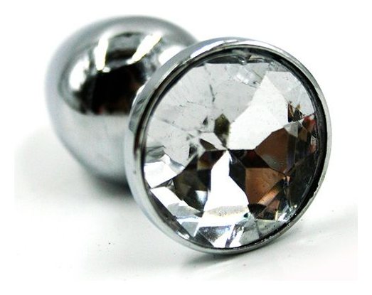 Малая анальная пробка из алюминия с прозрачным кристаллом - 7 см