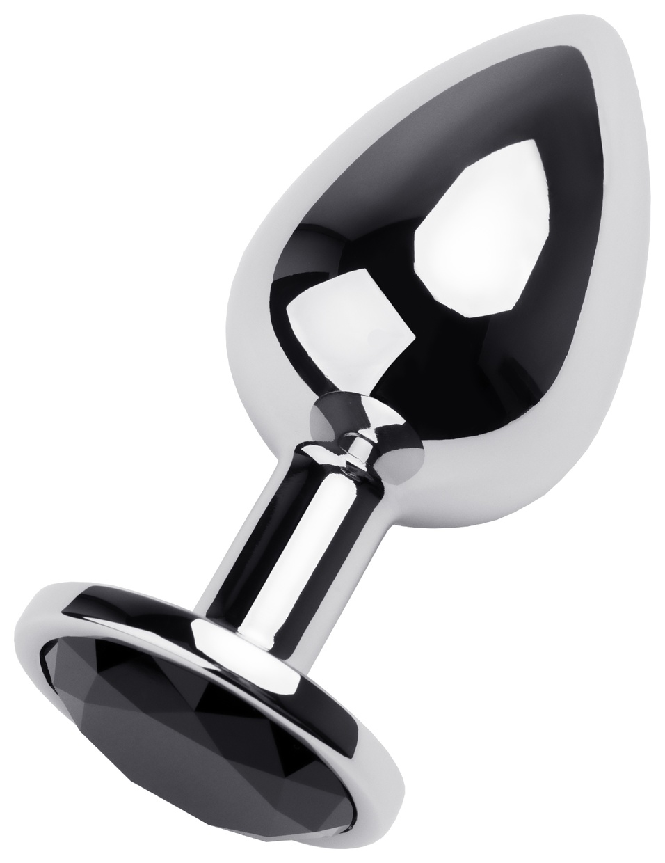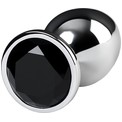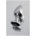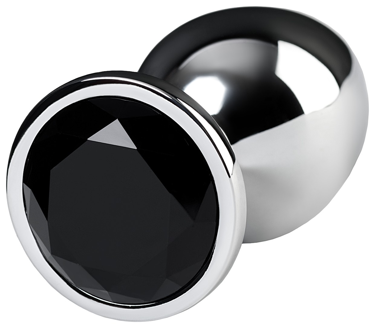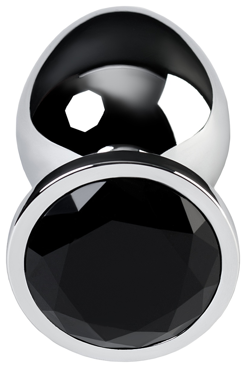 Серебристая анальная втулка с чёрным кристаллом - 9,5 см