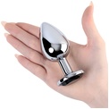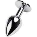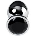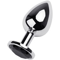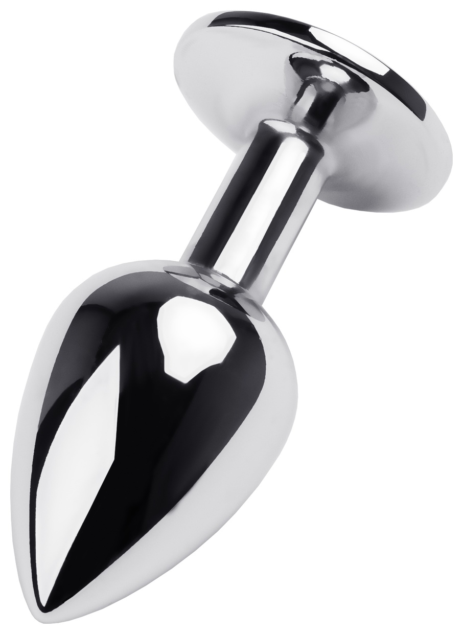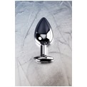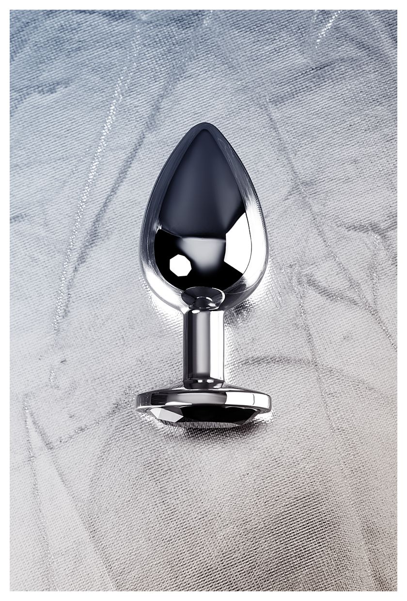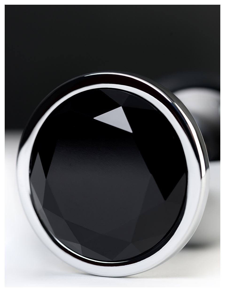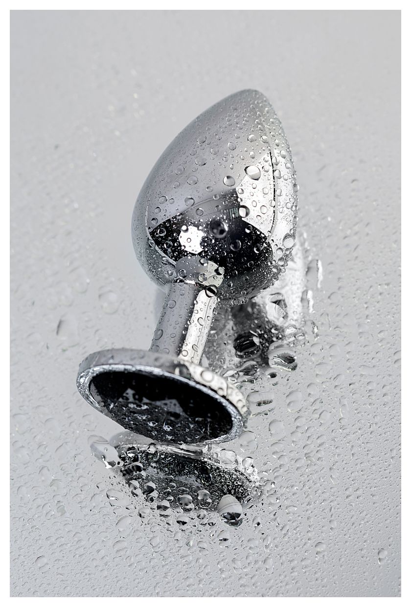 Серебристая анальная втулка с чёрным кристаллом - 9,5 см