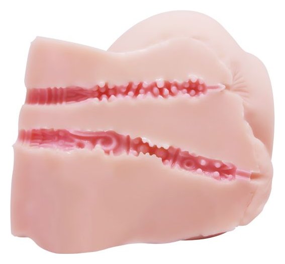 Телесный мастурбатор с двумя любовными тоннелями и вибрацией