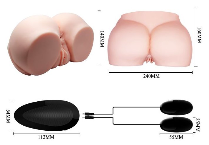 Мастурбатор с двумя любовными отверстиями, реалистичным анусом и узкой девственной вагиной. Текстурированные любовные отверстия обеспечивают максимально реалистичные ощущения, приводящие к фантастическому оргазму. Мастурбатор выполнен из материала напоминающего на ощупь человеческую кожу. Оснащен съемными виброяйцами с проводным пультом управления.