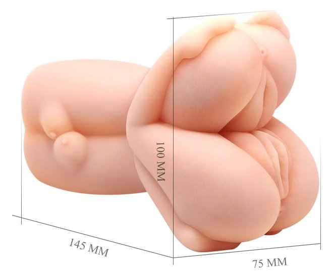 Мастурбатор выполнен из нежного, бархатистого на ощупь материала, имитирующего настоящую кожу. Интим-игрушка очаровывает мужчин своей оригинальностью: двумя женскими вагинами с рельефной внутренней поверхностью, что неоднократно увеличит силу эрекции и удовольствия.