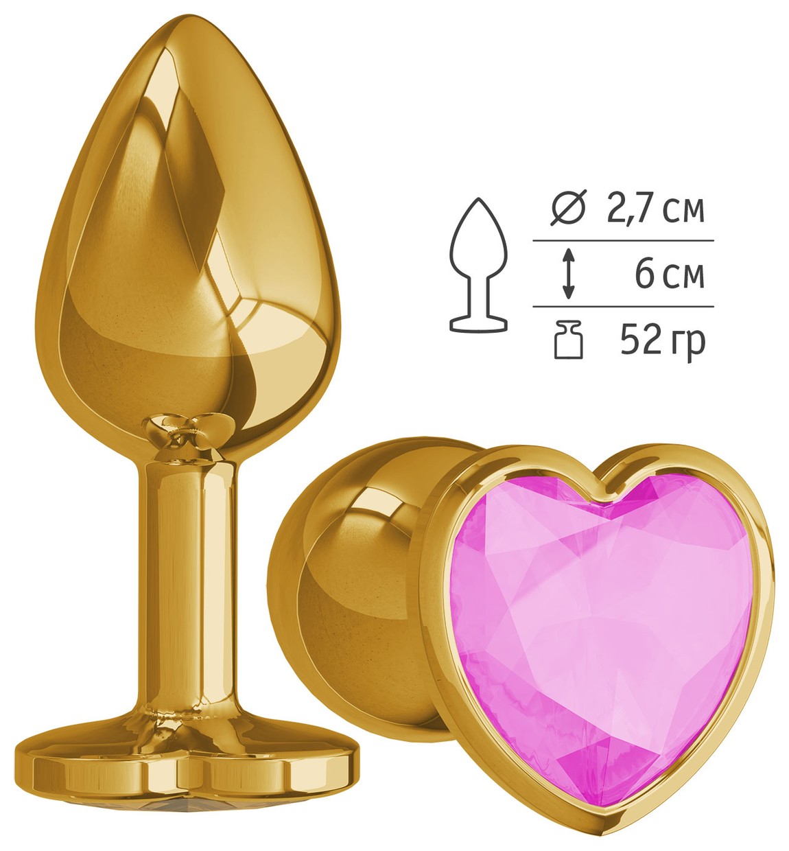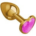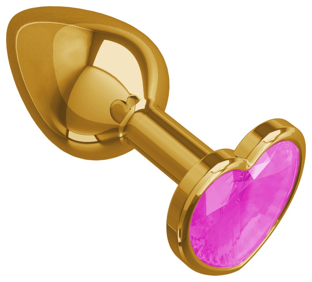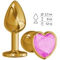 Золотистая анальная втулка с розовым кристаллом-сердцем - 7 см
