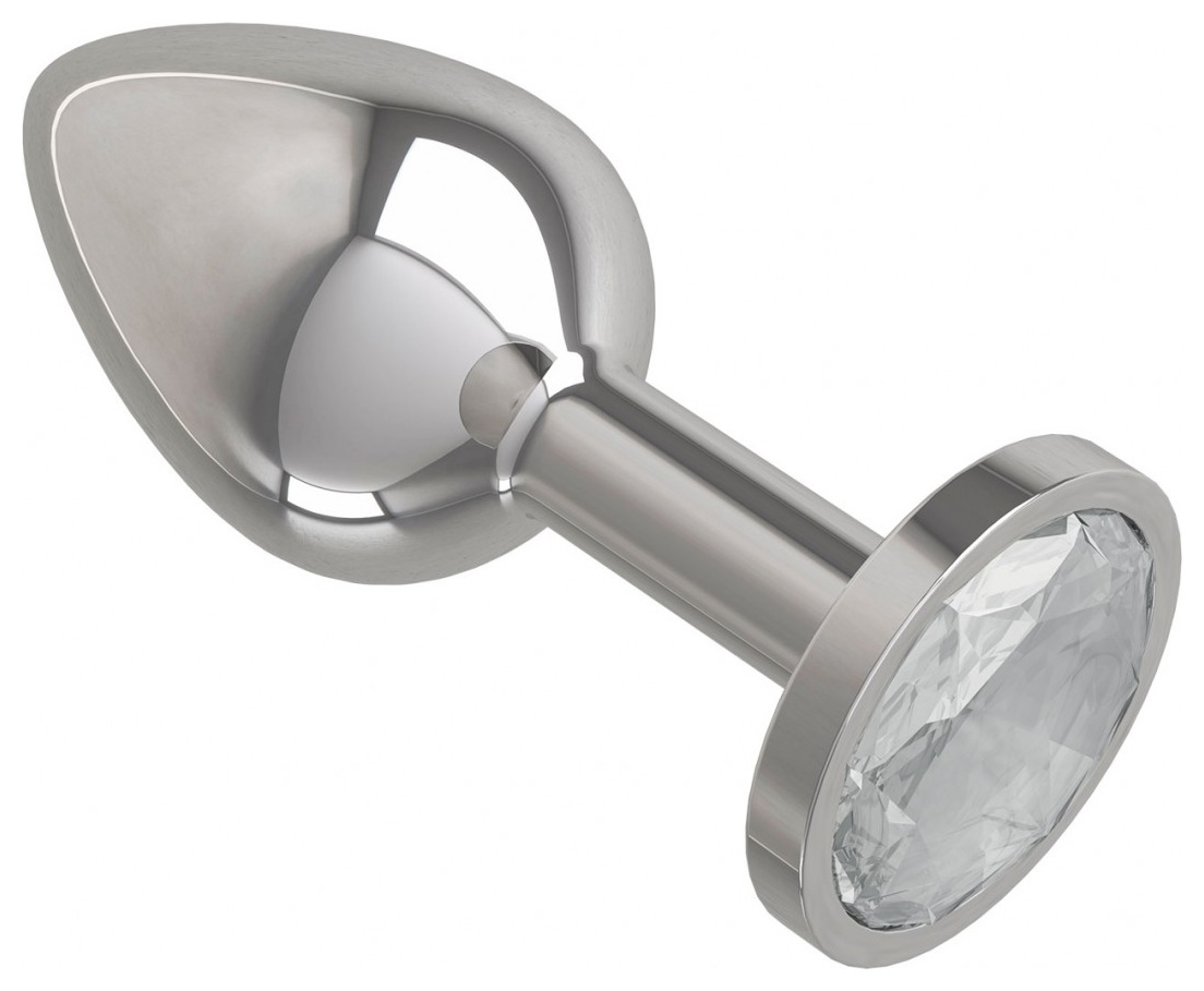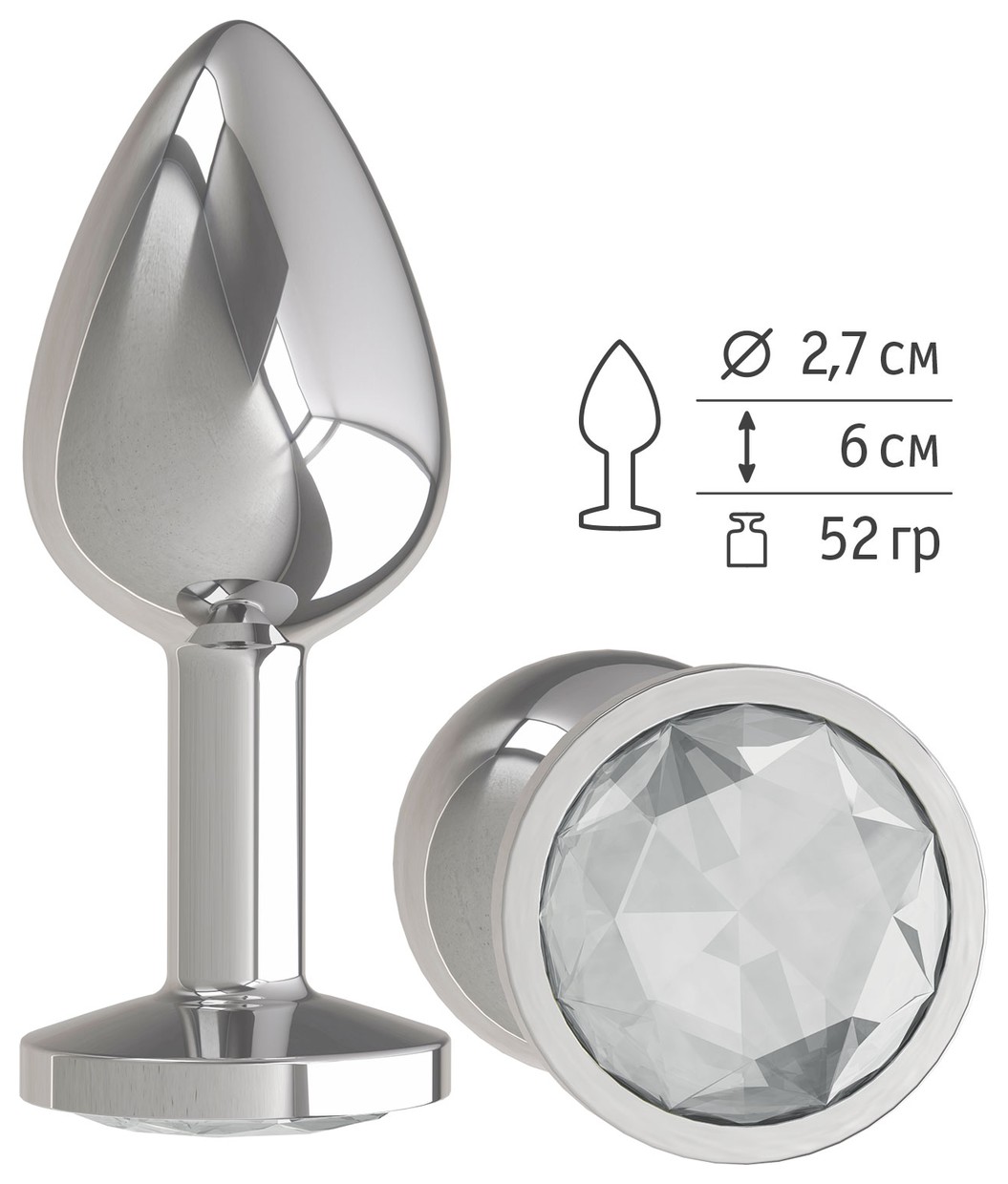 Серебристая анальная втулка с прозрачным кристаллом - 7 см