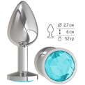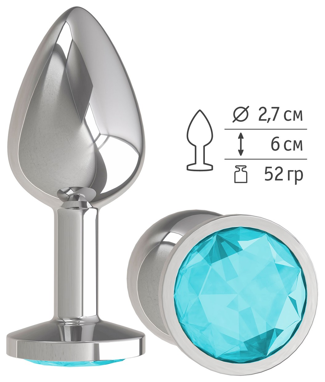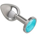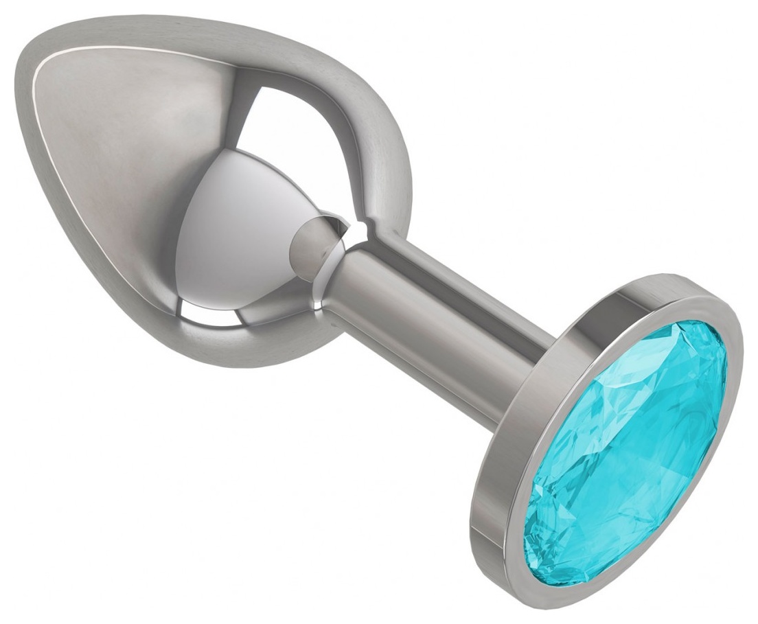Серебристая анальная втулка с голубым кристаллом - 7 см