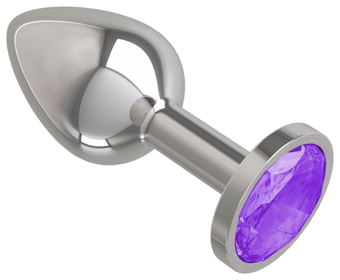 Серебристая анальная втулка с фиолетовым кристаллом - 7 см