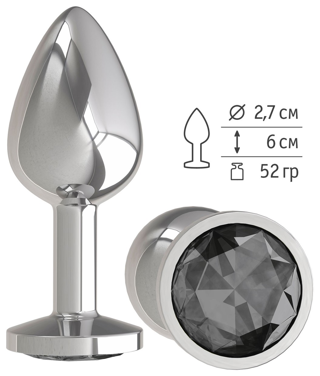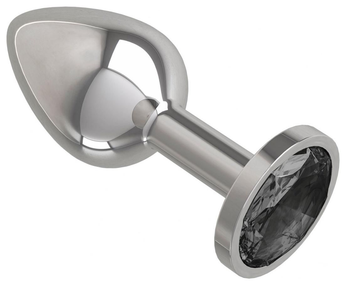 Серебристая анальная втулка с чёрным кристаллом - 7 см