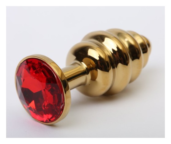 Золотистая рифлёная пробка с красным стразом - 8,2 см