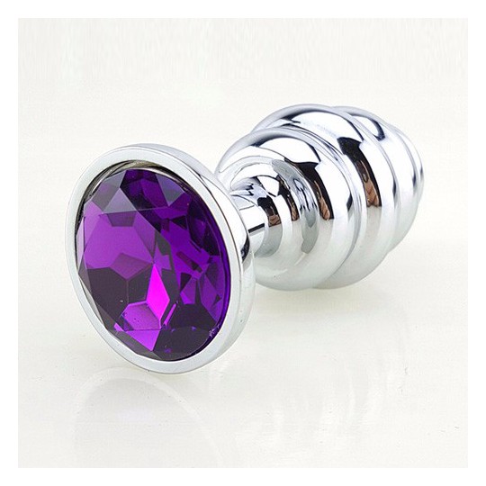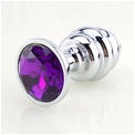 Серебристая рифлёная пробка с фиолетовым кристаллом - 9 см