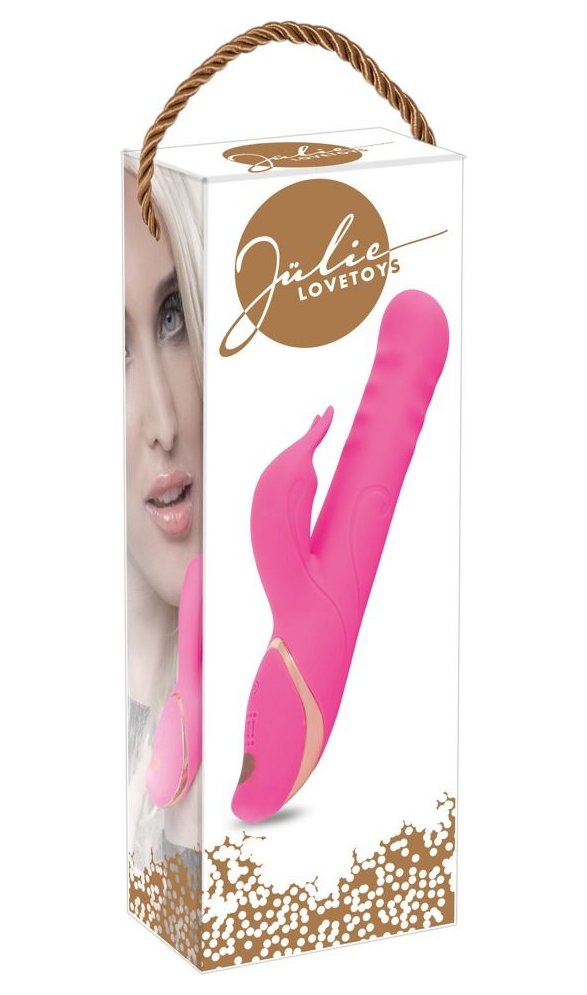 Розовый вибратор с клиторальным стимулятором Julie - 22.5 см
