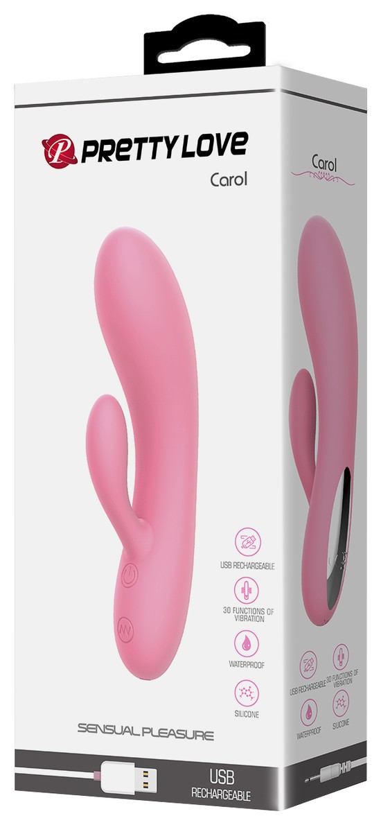 Нежно-розовый вибратор с клиторальным отростком Carol - 16,5 см