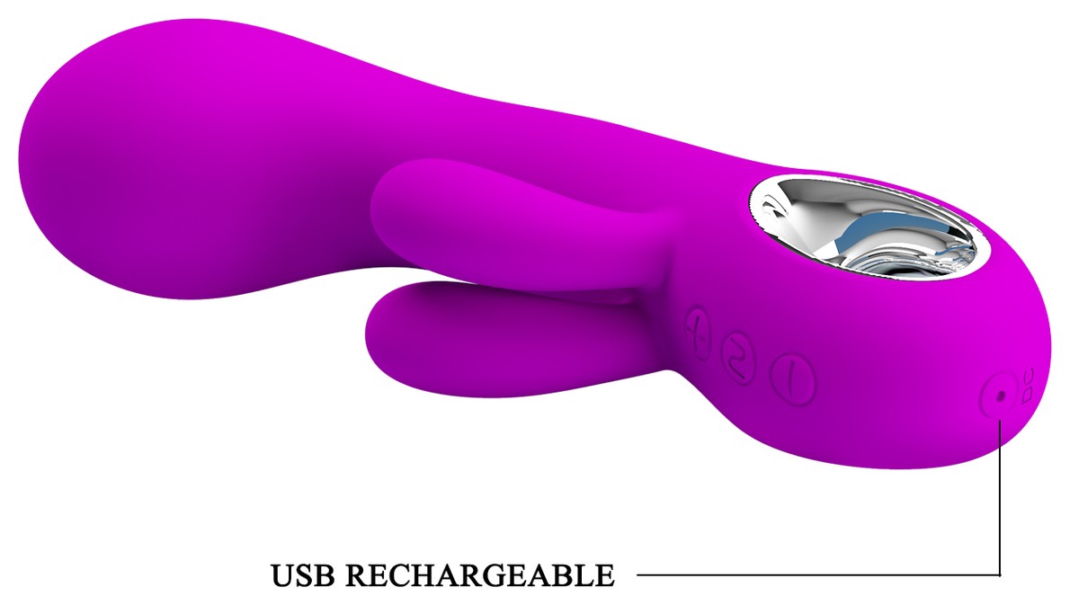 Многоскоростной перезаряжаемый вибратор компактного размера. Имеет клиторальный стимулятор в виде ушек зайчика. Гладкая поверхность.