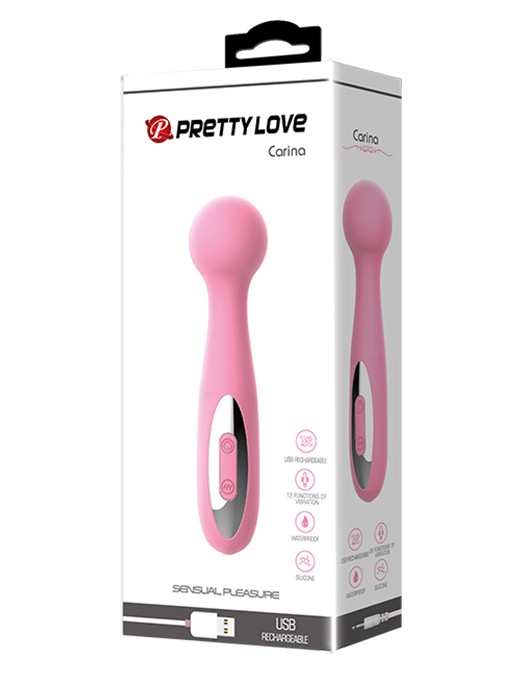 Нежно-розовый жезловый вибростимулятор Corina. 12 режимов вибрации. Функция памяти.