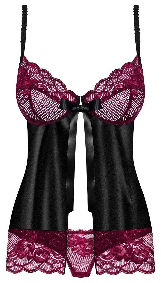 Чувственный бэби-долл с малиновым кружевом и бантом