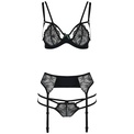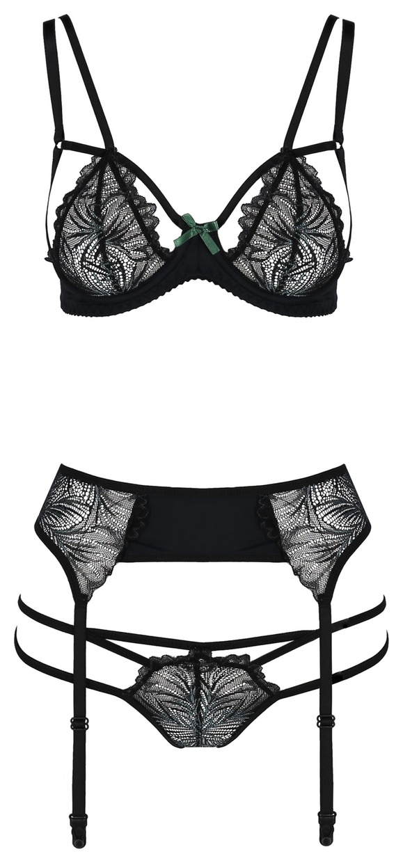 Роскошный комплект Floris с двухцветным кружевом. В комплекте: бюстгальтер, трусики-стринги, пояс.