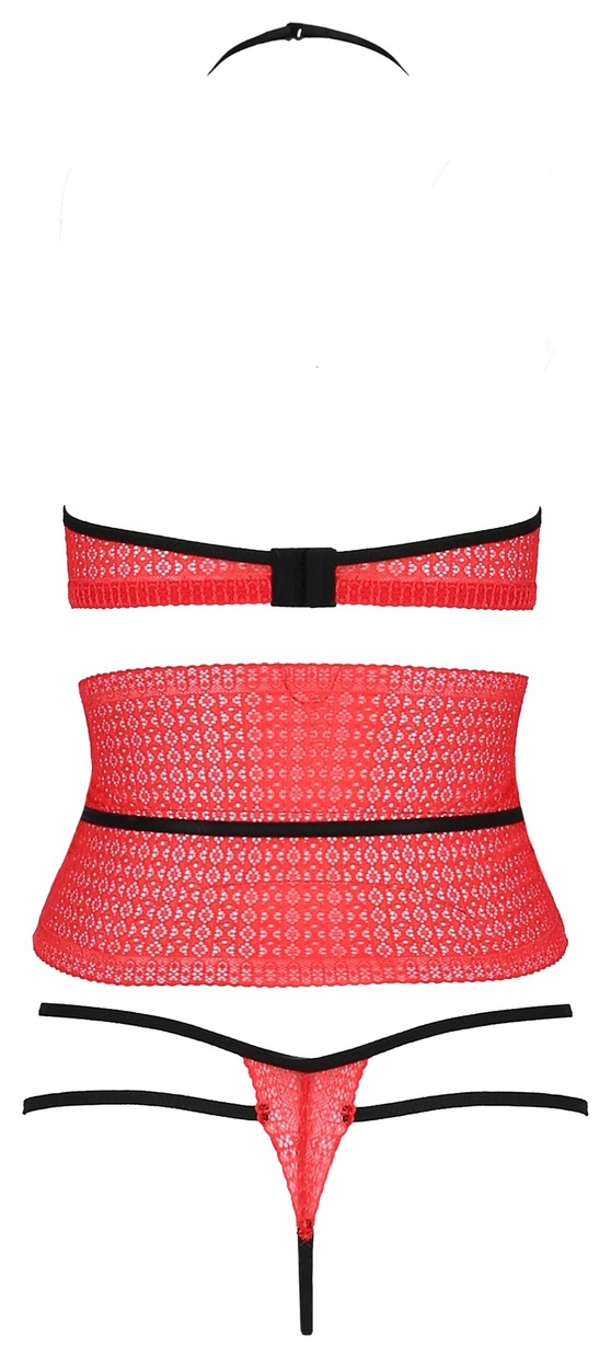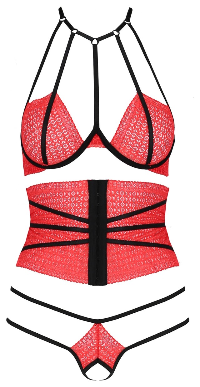 Яркий двухцветный комплект Akita из кружева. В комплекте: бюстгальтер, трусики-стринги, пояс.