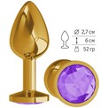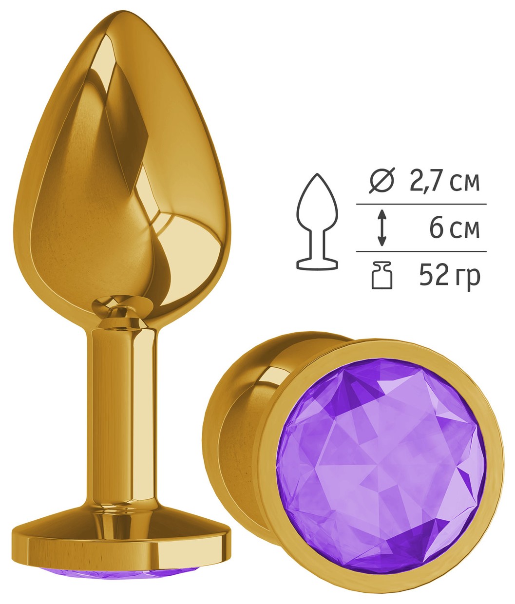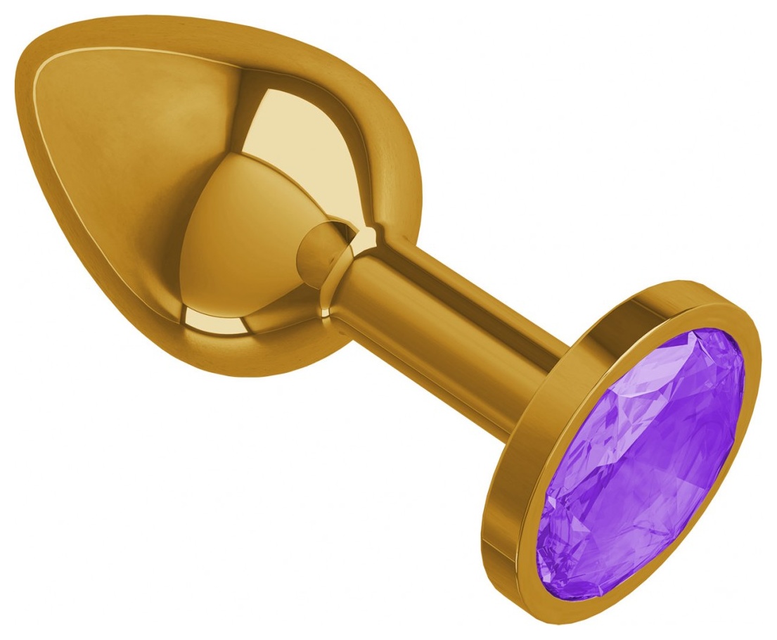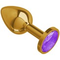 Золотистая анальная втулка с фиолетовым кристаллом - 7 см