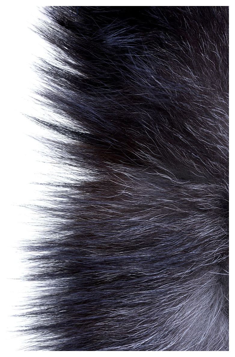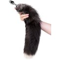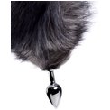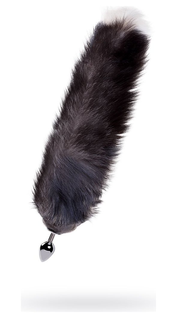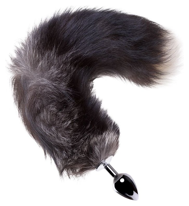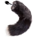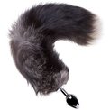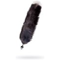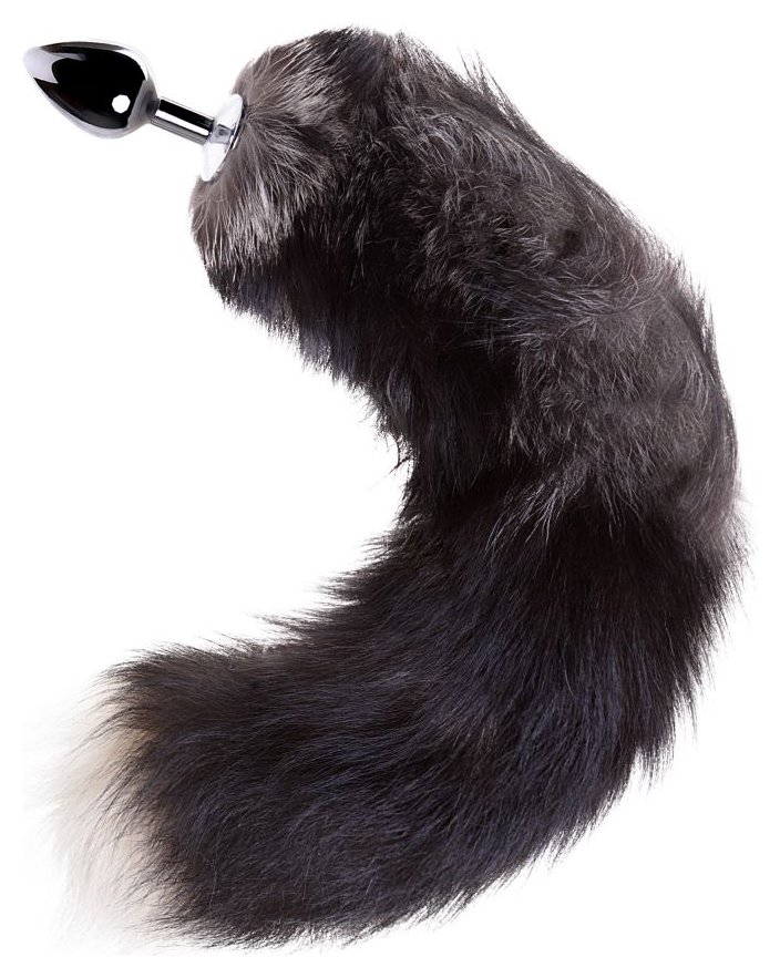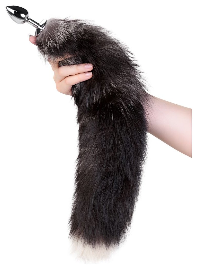 Серебристая металлическая анальная втулка с хвостом-чернобуркой. Длина с хвостом - 34 см.