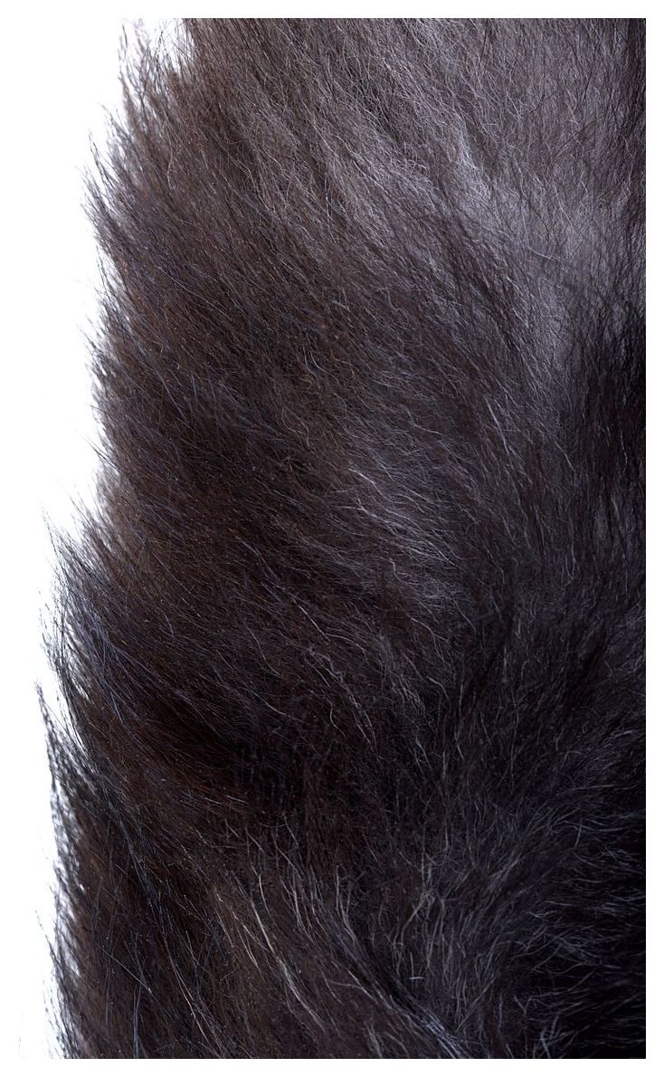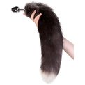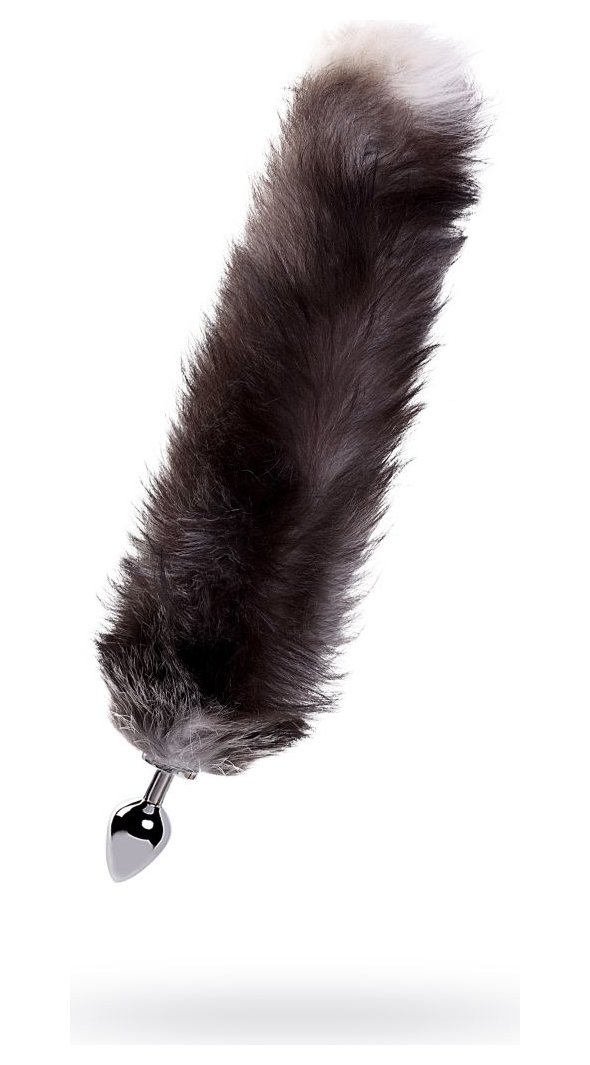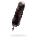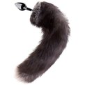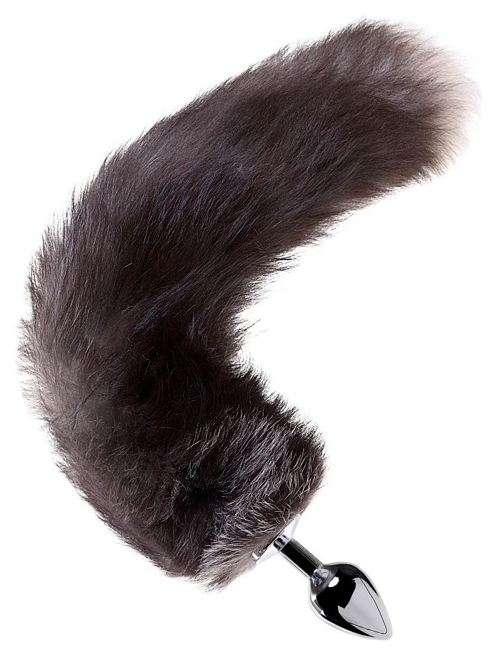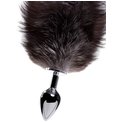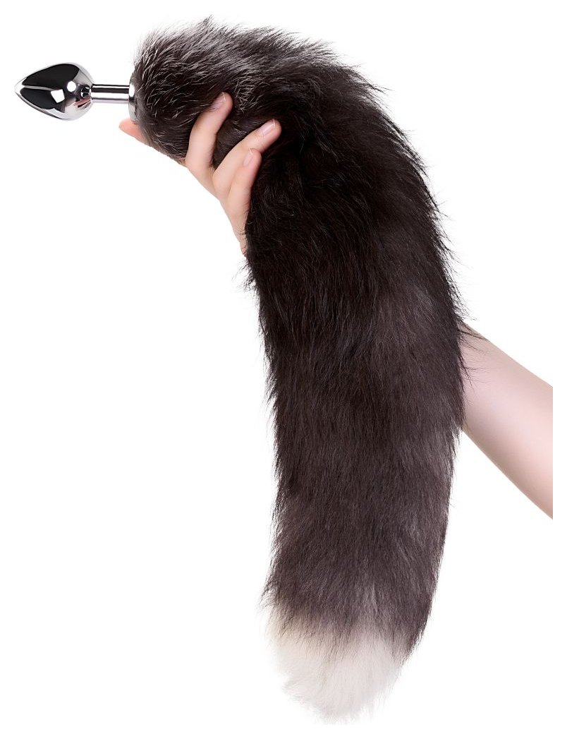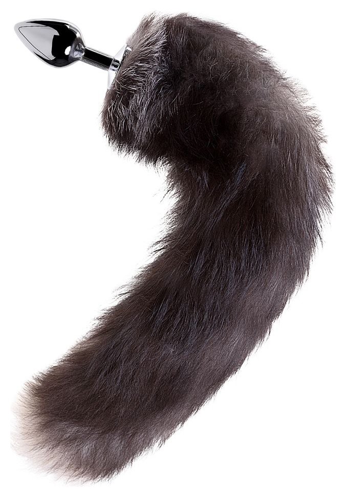 Большая серебристая металлическая анальная втулка с хвостом-чернобуркой. Длина с хвостом - 34 см.