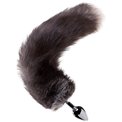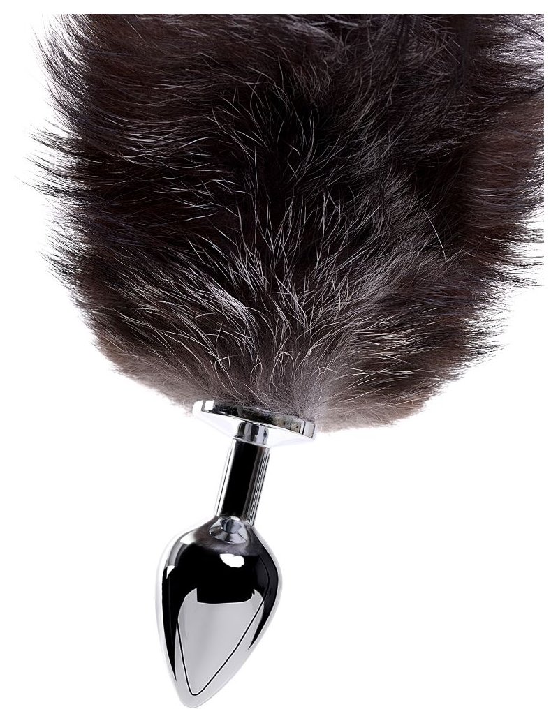 Большая серебристая металлическая анальная втулка с хвостом-чернобуркой