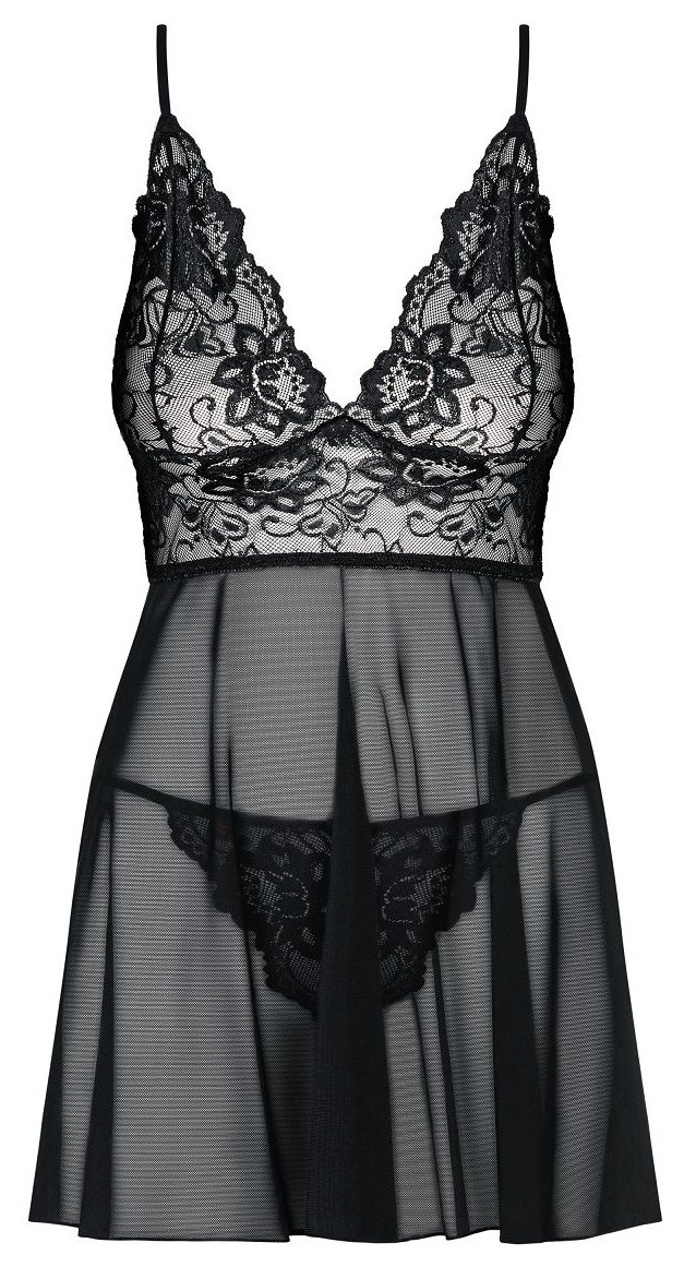Эта сорочка бэби-долл подчеркнёт вашу женственность. Полупрозрачная, выполненная из практически невесомого материала, она окутает ваш стан лёгкой дымкой. Кружевной лиф с широкой ажурной полосой под ним притянет взгляд к груди, а также визуально переместит линию талии выше. Вот почему ножки будут выглядеть такими длинными! Лёгкий подол, укрывая животик, трусики-стринг и бёдра пышными складками, завершит образ роковой соблазнительницы. В комплекте: сорочка, трусики-стринг.