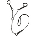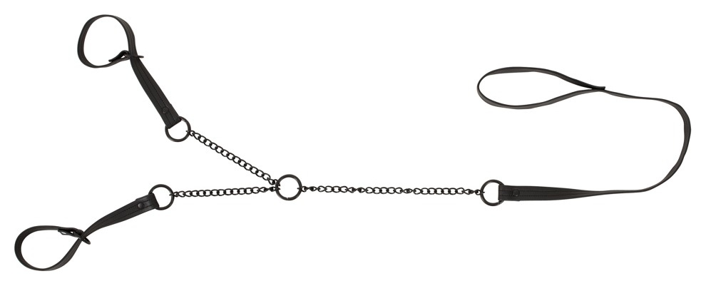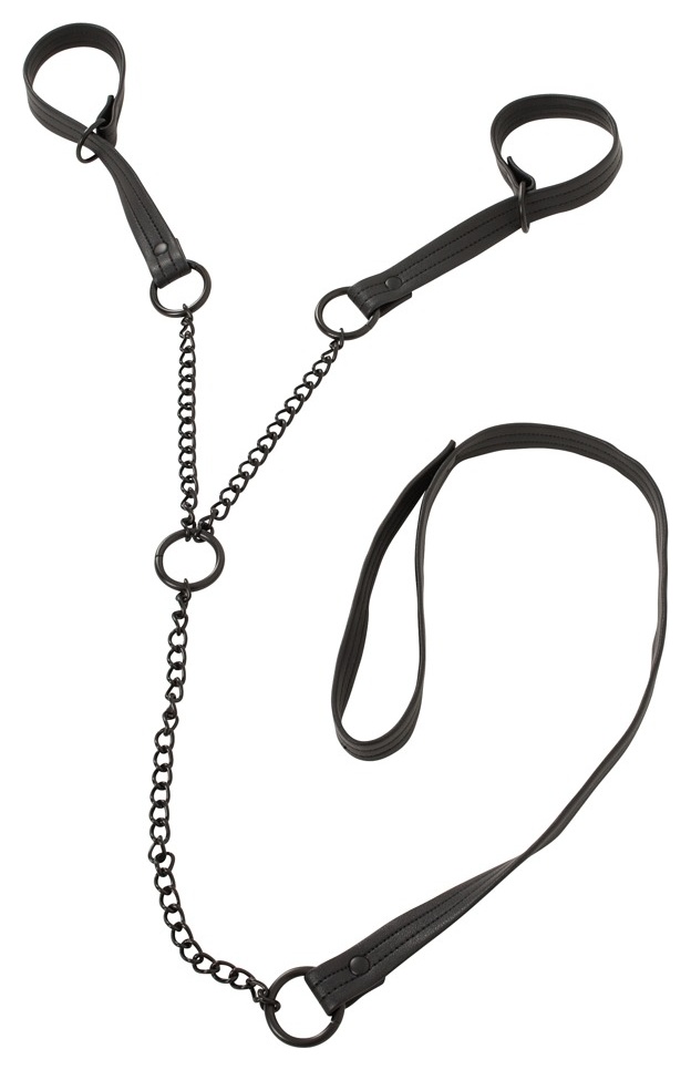 Тонкие наручники с поводком из мягкой искусственной кожи. Петли регулируются по диаметру, плотно облегая кисти и надежно фиксируя партнера при натяжении поводка. Длина поводка с петлей - 90 см.
