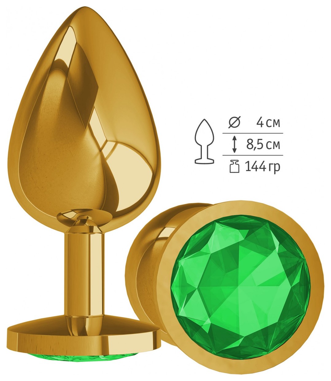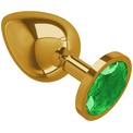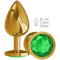 Золотистая большая анальная пробка с зеленым кристаллом - 9,5 см