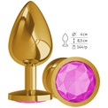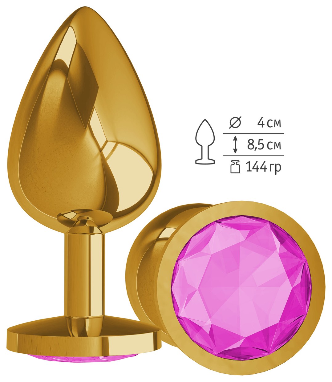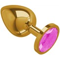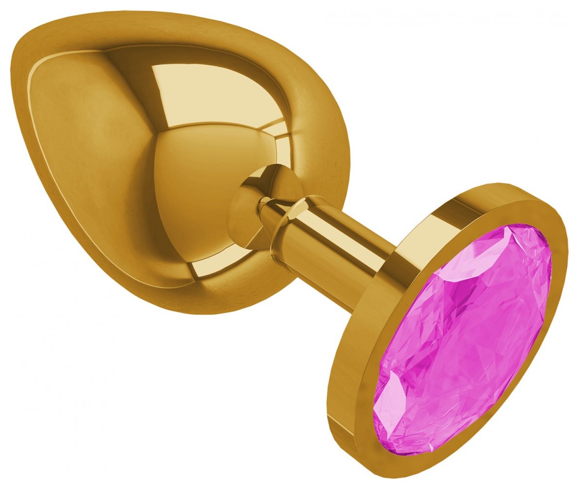 Золотистая большая анальная пробка с розовым кристаллом - 9,5 см