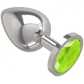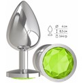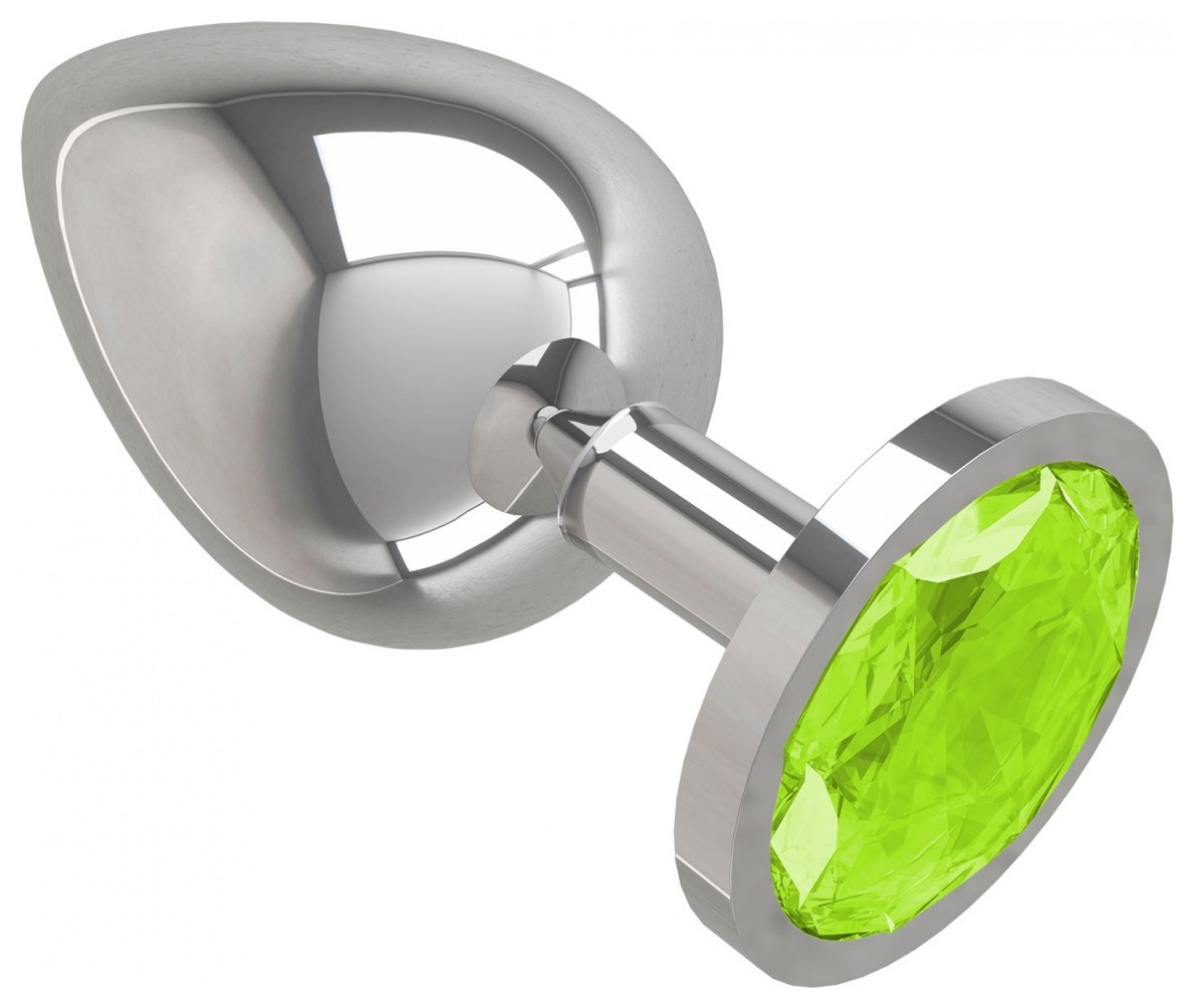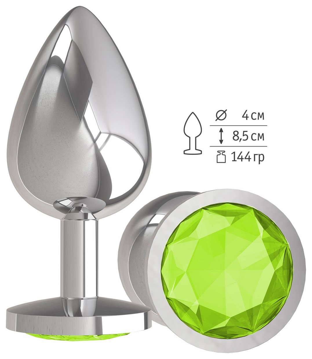 Серебристая большая анальная пробка с лаймовым кристаллом - 9,5 см