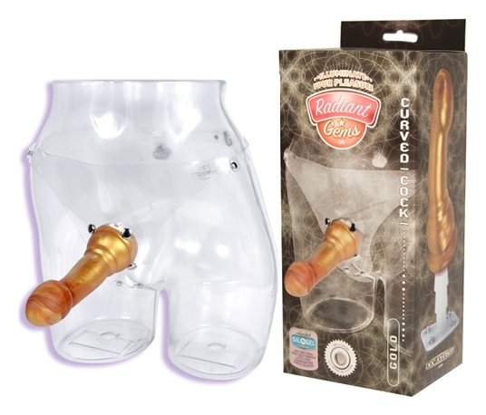 Прозрачные трусики на ремешках и золотой фаллос – вот и весь состав набора, необходимого вам с партнёршей для взаимного удовлетворения. Надев трусики и закрепив на них насадку с крупной головкой, вы становитесь ведущим в вашей паре. Погружая фаллос в лоно партнёрши то нежно, то неистово, вы подарите ей и себе море наслаждения! Длина - 17,5 см. Максимальный диаметр - 4 см.