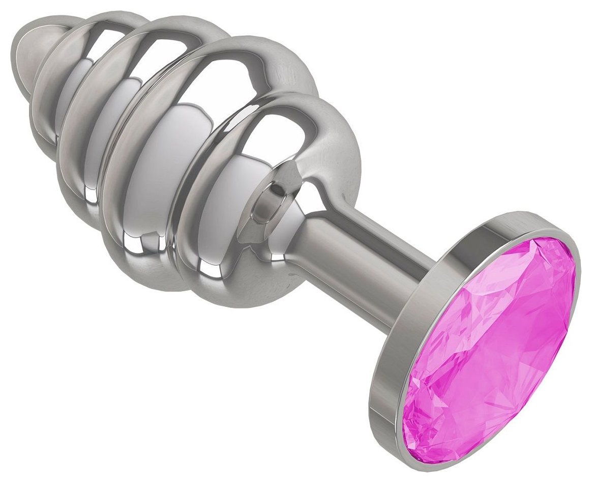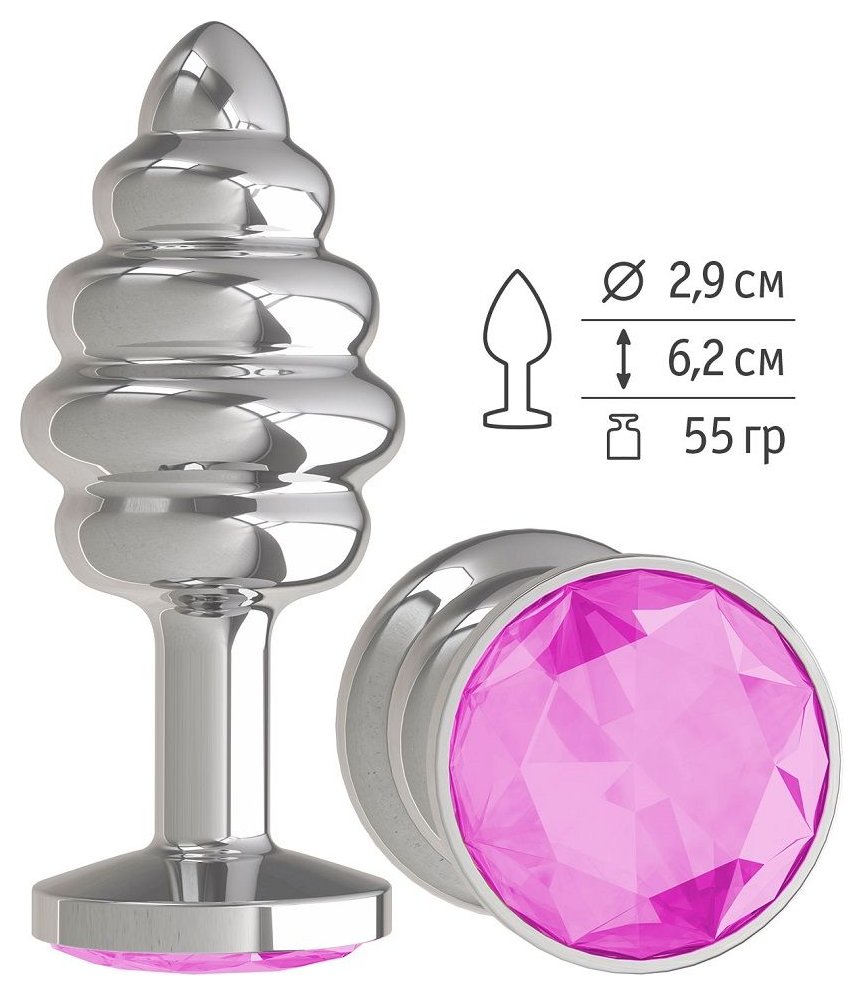 Серебристая пробка с рёбрышками и розовым кристаллом - 7 см