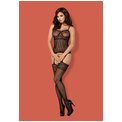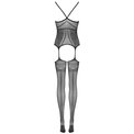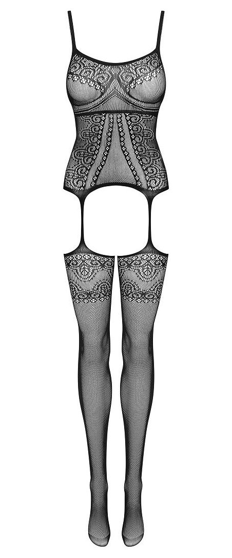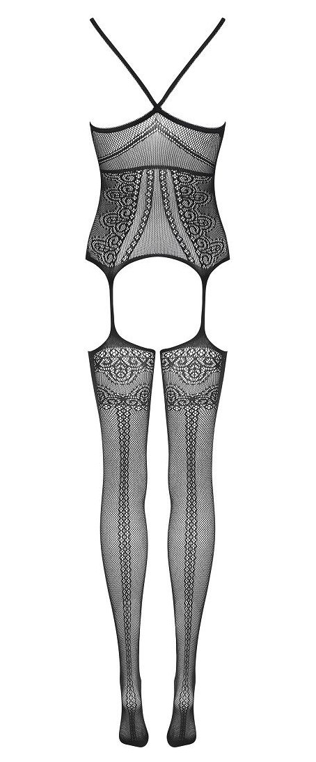 Очень эффектный ажурный комбинезон с интимным доступом. Шикарный вариант для сексуального наряда, который вызовет восхищение с первого взгляда. Сшит из мельчайшей эластичной сеточки, с множеством кружевных узоров во всех направлениях. Причудливым орнаментом украшен лиф, линия силуэта, резинка на чулочках. Дизайн комбинезона будоражит воображение. Интересная комбинация, напоминающая корсет с лифом, пажами и чулками. Спина – полуоткрыта. А все пикантные места – в свободном доступе. Поэтому снимать одеяние не придется. И можно оставаться сексуально приодетой с любого ракурса.