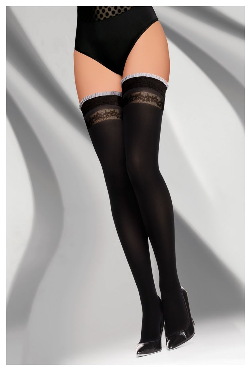 Чулки из осенне-зимней коллекции. Верх украшен цветочным рисунком и рюшами, уплотненный невидимый носок, на силиконе.