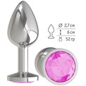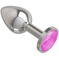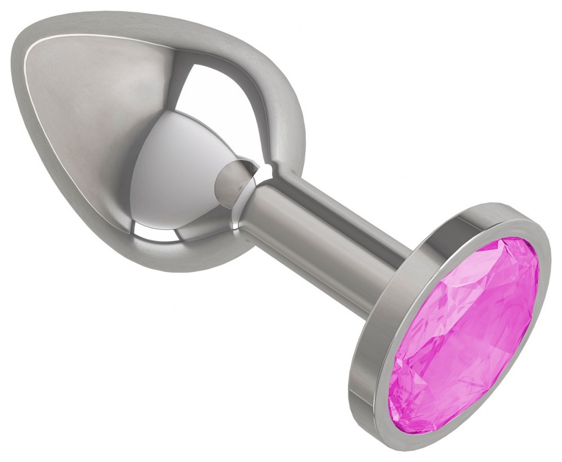 Серебристая анальная втулка с розовым кристаллом - 7 см