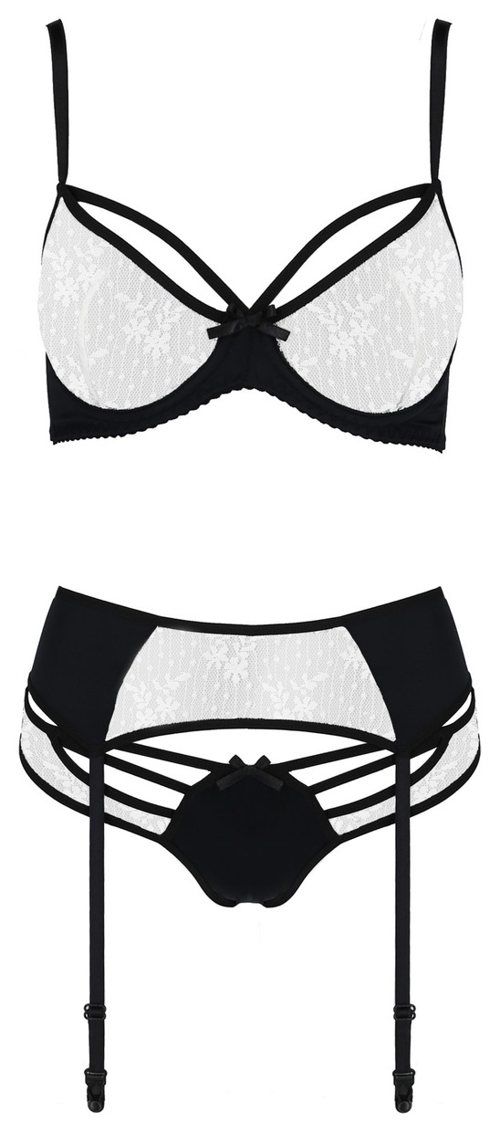 Соблазнительный двухцветный комплект Nea с цветочным кружевом. В комплекте: бюстгальтер, пояс, трусики.