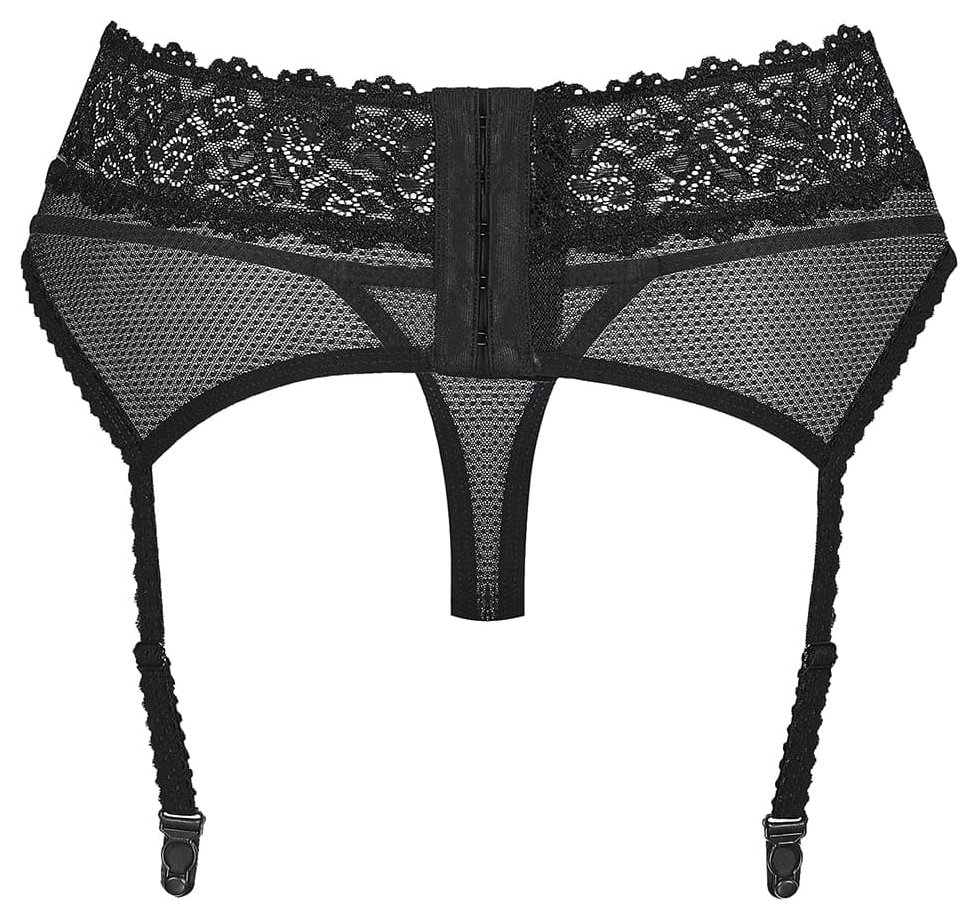 Восхитительный широкий пояс из кружева. С пажами и практически невидимыми трусиками-стрингами в комплекте. Комфортный, эластичный и женственный набор для притягательного образа. Ткань – полупрозрачная и на трусиках, и на поясе. Почти не скрывает прелести, однако оставляет место для фантазий. В этом одеянии легко стать обольстительницей: сзади – почти полностью открытые ягодицы, спереди – причудливые кружевные вставки с узорами. Осталось добавить чулочки на широкой резинке, и игра начинается! В комплекте: пояс, трусики-стринги.
