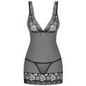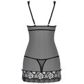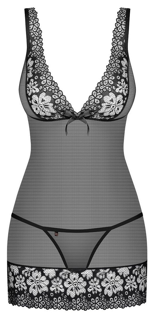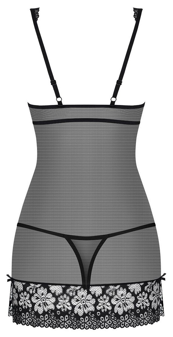 Сорочка выполнена из полупрозрачной сеточки в сочетании с отделкой из красивого цветочного кружева, бретели регулируются. В комплекте: сорочка, трусики-стринги.