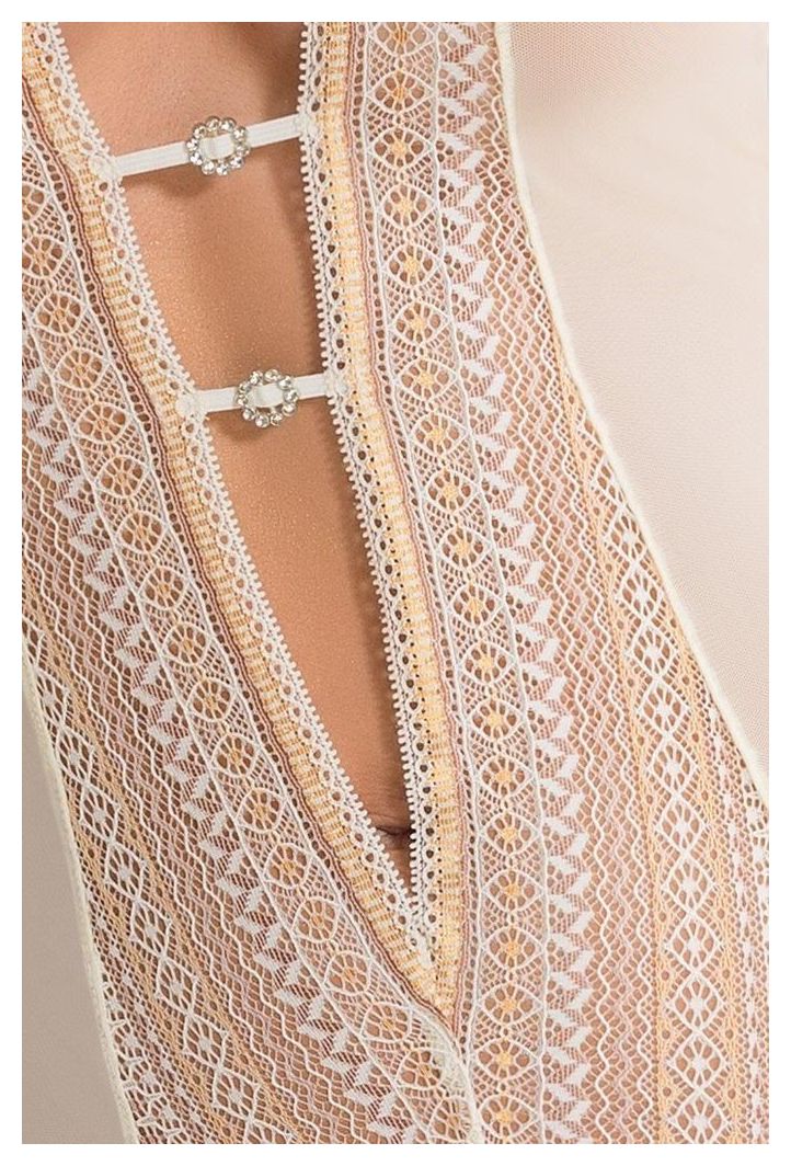 Существует ли бельё, которое могло бы ещё более пробуждать чувства, чем то, где манит тюль, а кружево несмело намекает на женское тело под прозрачным материалом? Боди подчёркивает каждый элемент женского тела. Элементы бижутерии в серебряном цвете только подчёркивают элегантность боди, придавая ему очень оригинальный характер.