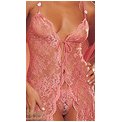 Даже алые розы, подаренные Вами, будут просто травой у ног Вашей любимой женщины-богини! Удлиненная сорочка из нежного эластичного кружева. Спереди разрез закреплен завязками. Бретели регулируются. В комплекте с трусиками-стринг. Состав: 68% нейлон, 32% искусств. шелк. Предметов в комплекте: 2 - сорочка, трусы
