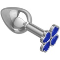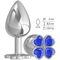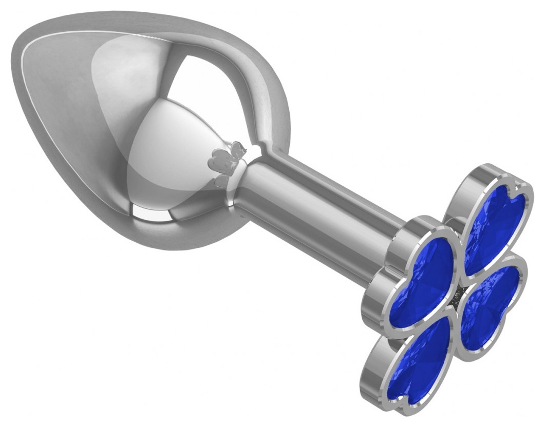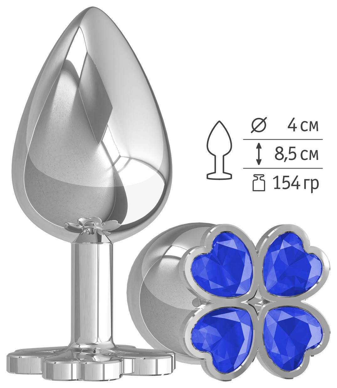 Серебристая анальная пробка-клевер с синим кристаллом - 9,5 см