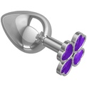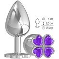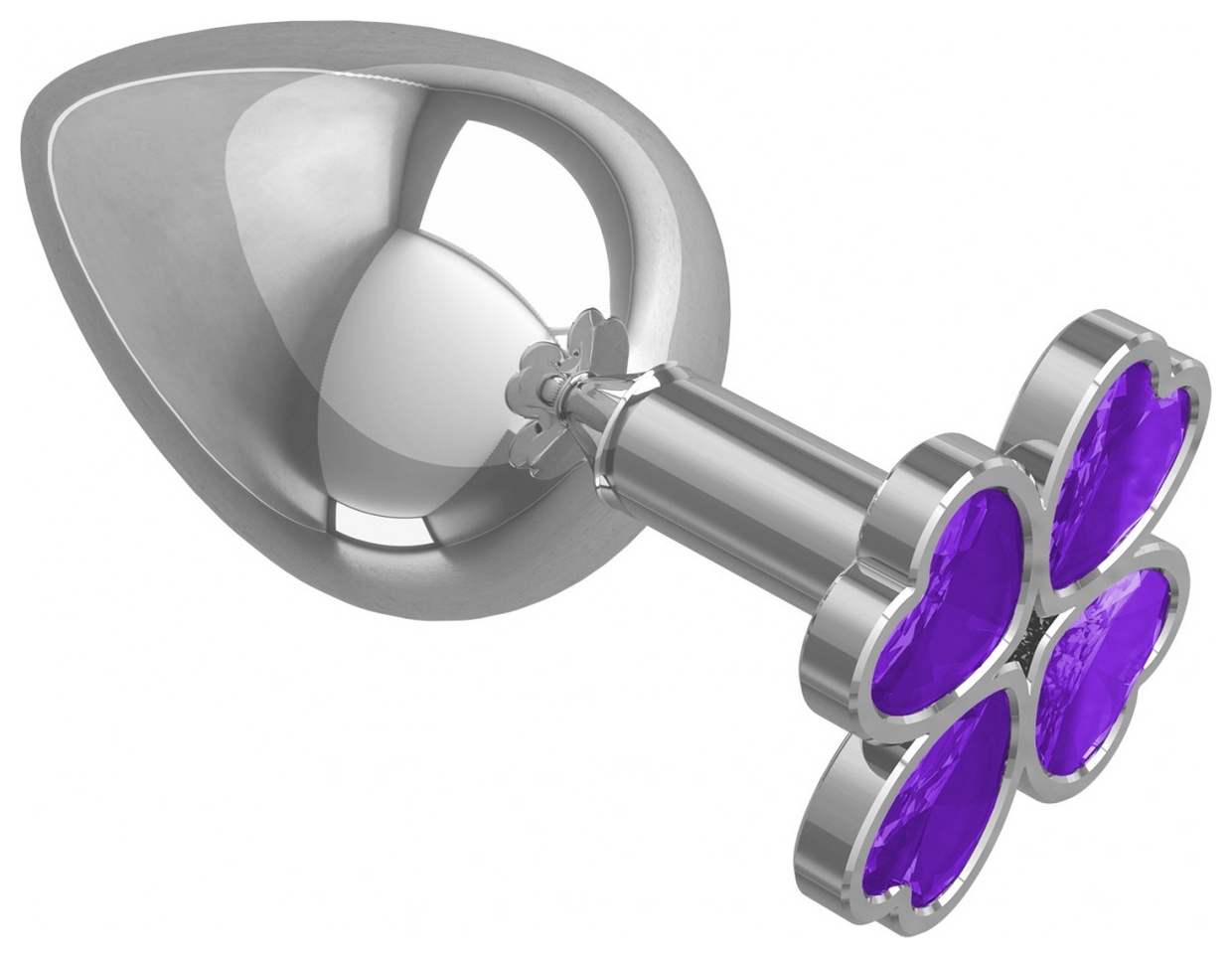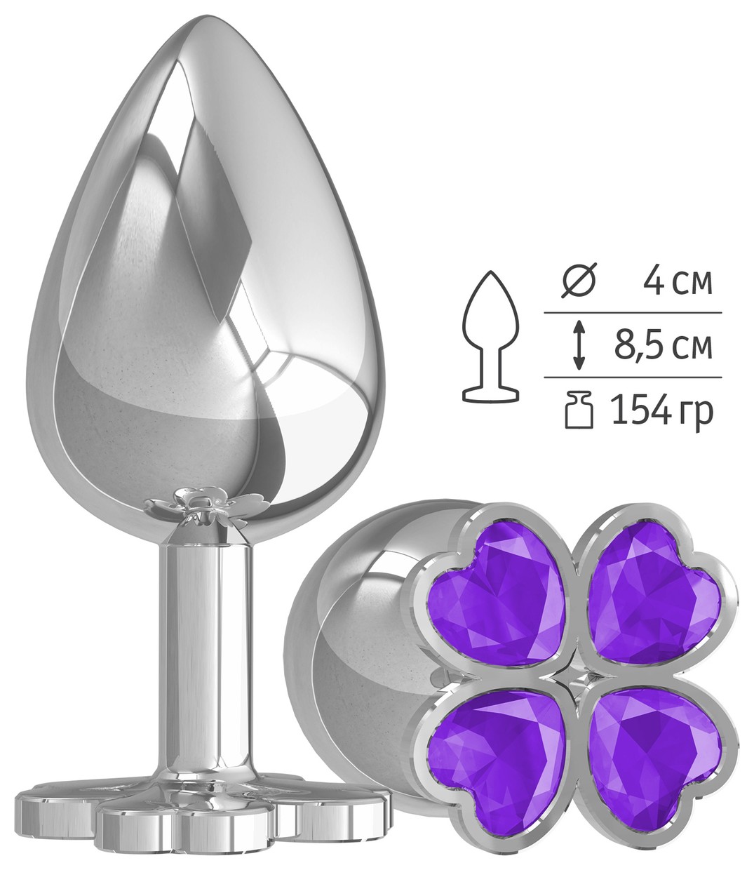 Серебристая анальная пробка-клевер с фиолетовым кристаллом - 9,5 см