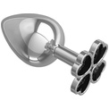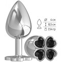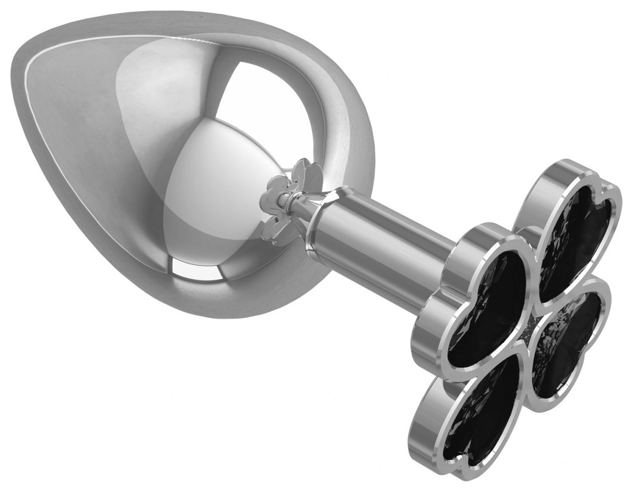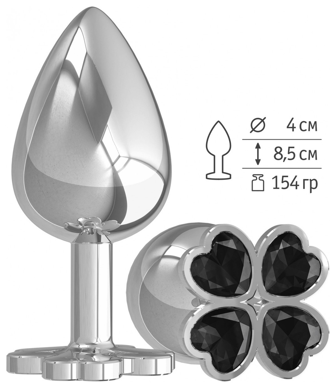 Серебристая анальная пробка-клевер с черным кристаллом - 9,5 см