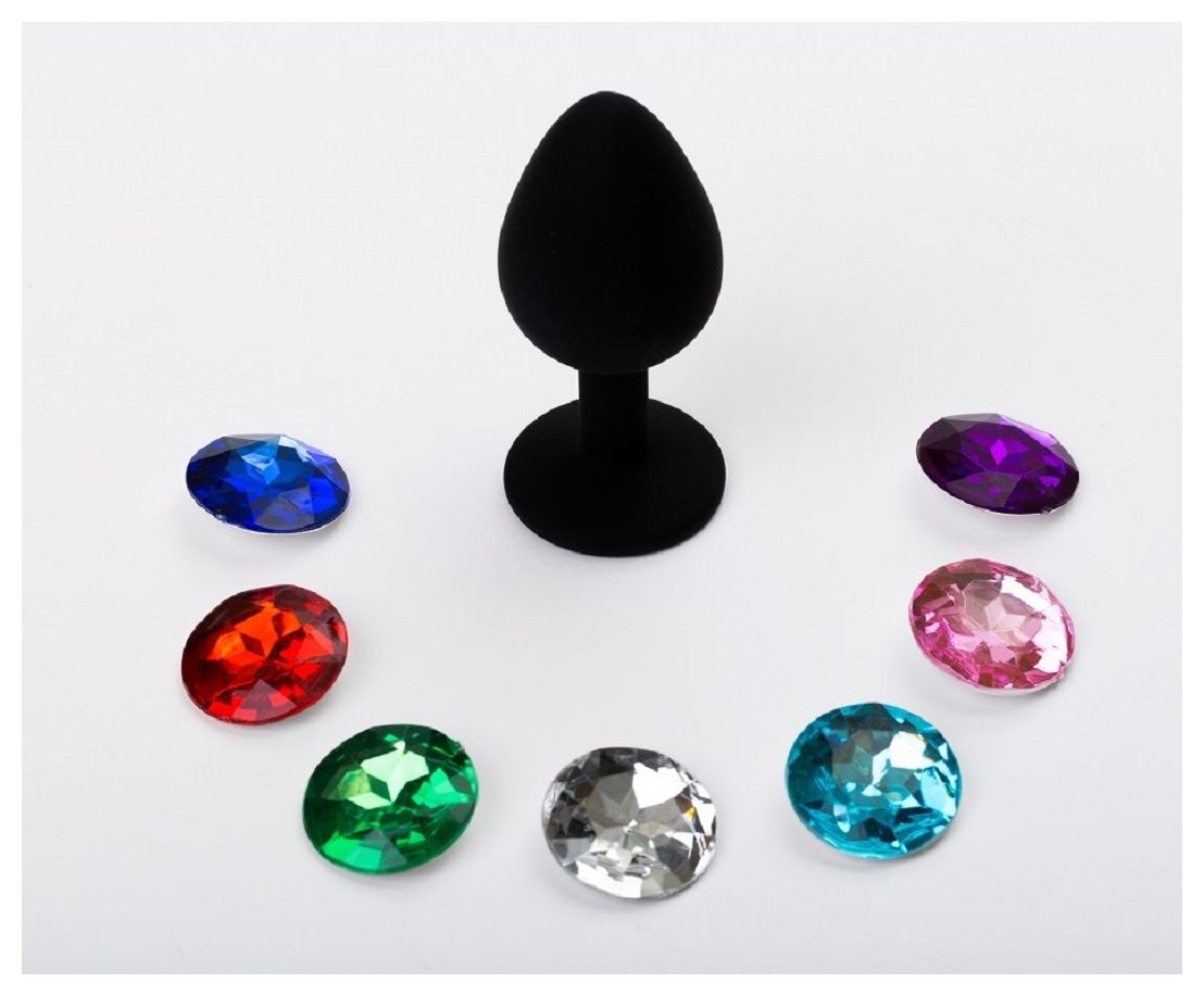 Черная большая силиконовая пробка с 7 сменными стразами - 9,5 см